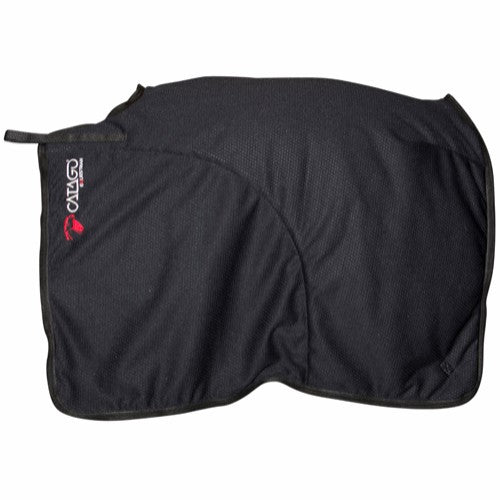 CATAGO FIR-Tech Healing exercise sheet in light and breathable material. The large muscles in the horse's hindquarters are covered by ceramic woven particles, as well as our well-known Synthermax fibrefill, which ensures optimal blood circulation in the muscles during warm-up, and good recovery after training. Long velcro straps attach it to the saddle.