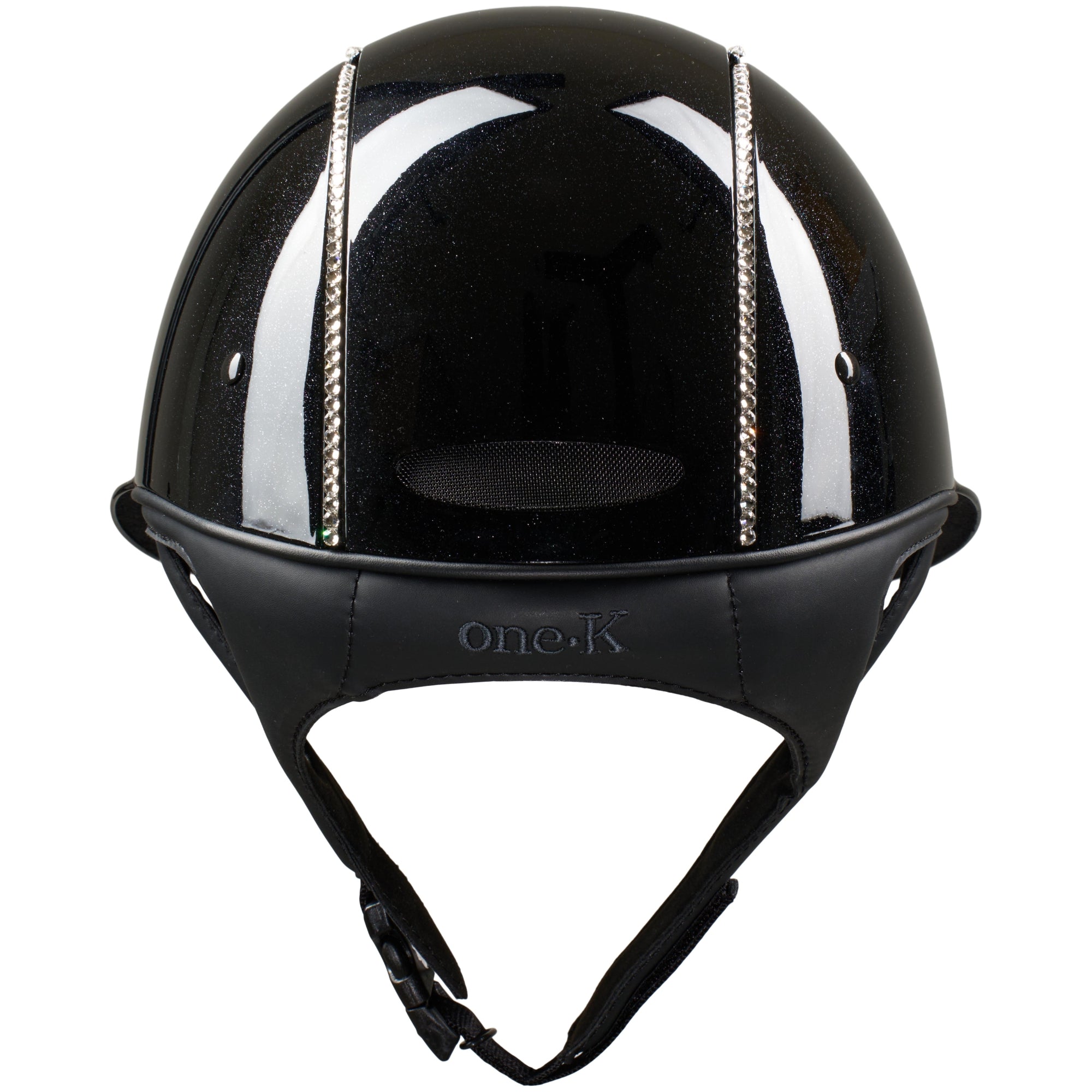 - Hand-applied white Swarovski crystals